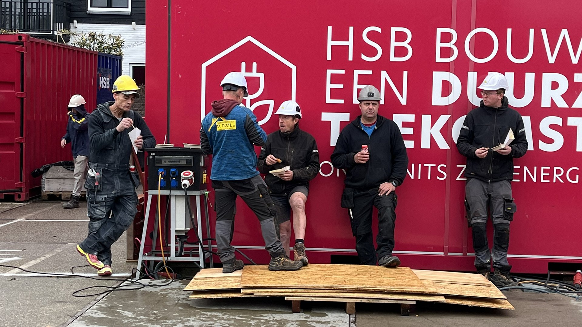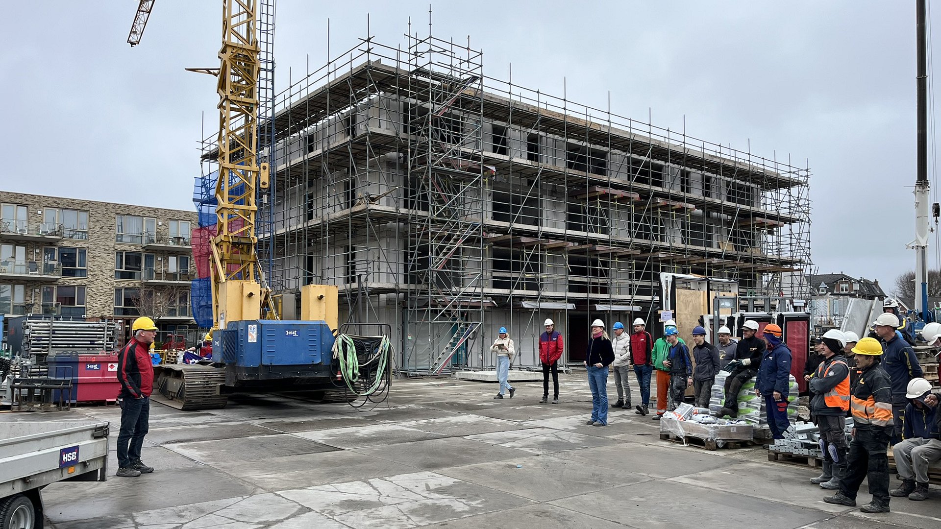 03-04-2026 – Donderdag 2 april bereikte de bouw van Nieuw Trompenburg het hoogste punt. In aanwezigheid van het bouw- en projectteam hees HSB Bouw een dakplaat op de liftschacht van het appartementengebouw. Een mooi moment om het bouwteam en de onderaannemers in het zonnetje te zetten. Als blijk van waardering genoten we samen van frites en snacks. Een welverdiend dankjewel voor hun vakmanschap en inzet!